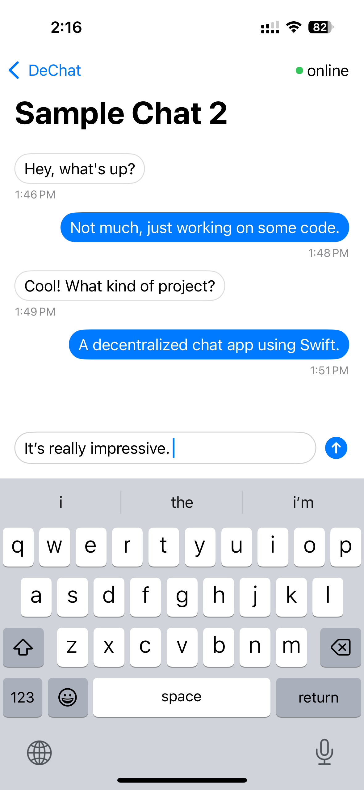A decentralized, end-to-end encrypted chat app based on a identity system powered by DHT and Dynamic Secret. Implemented in Swift and SwiftUI, enabling secure communication without reliance on central servers.